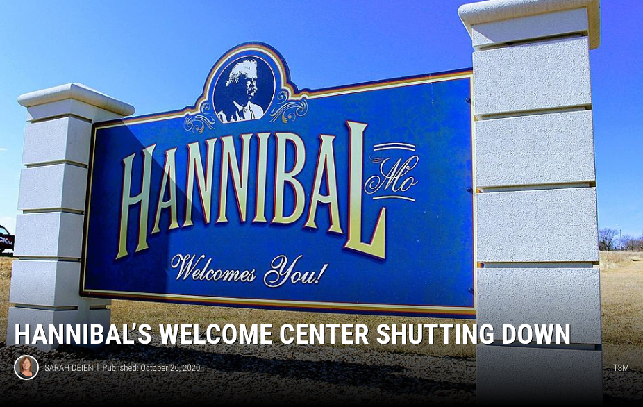 We saw a bunch of political signs as we drove, with plenty of signs for local candidates; there were more for Biden than we thought we’d see, including some that read Farmers for Biden. As we expected, though, there were more Trump signs, increasing in proportion to the Biden signs the closer we got to Hannibal and coming to include giant Trump flags on the backs of trucks and stuck right in the ground. Some of the giant stiff yard signs, even farther north, were Biden signs, or once had been–somebody had cut out the BIDEN on a few of them, leaving neat rectangular holes above the smaller PRESIDENT. We didn’t see similar editing work done on any Trump signs.
